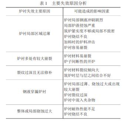 中頻爐爐襯裂紋傾向大和不耐鋼液沖刷是中頻爐失效的主要原因,選擇比較容易燒結(jié)、裂紋和崩裂傾向 小、耐鋼液沖刷等特點的中頻爐爐襯材料,采用適當(dāng)?shù)臓t襯修筑和維護工藝,能使中頻爐爐齡從 45 爐次提高到 70 爐 次以上。
